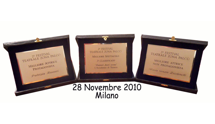 Premio miglior attrice a Fossano (Cuneo) con "Rumori fuori scena" rappresentata il 25 Ottobre 2010.